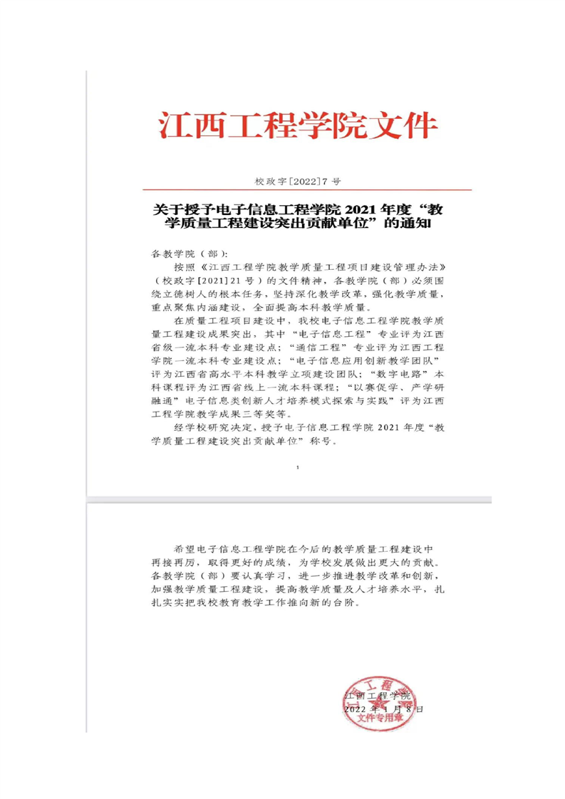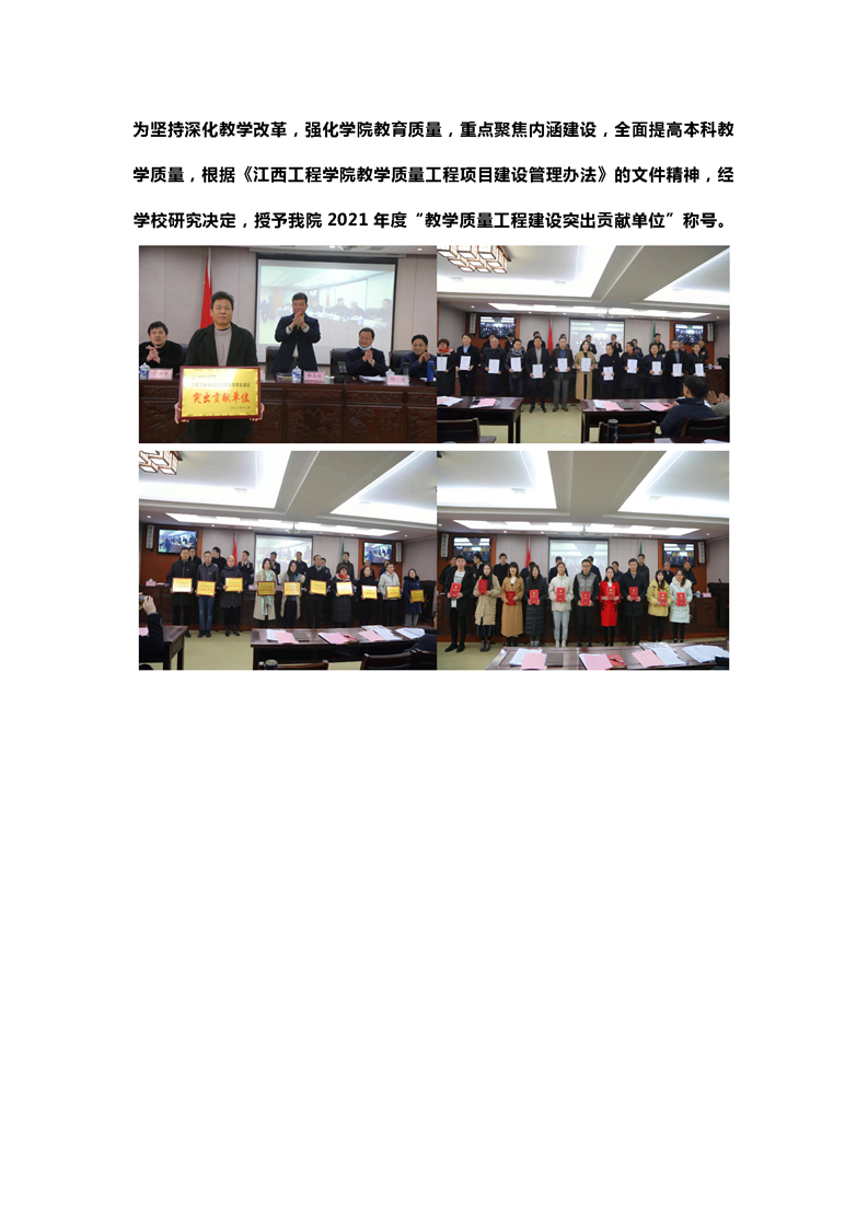 公司获2021年度“教学质量工程建设突出贡献单位”称号