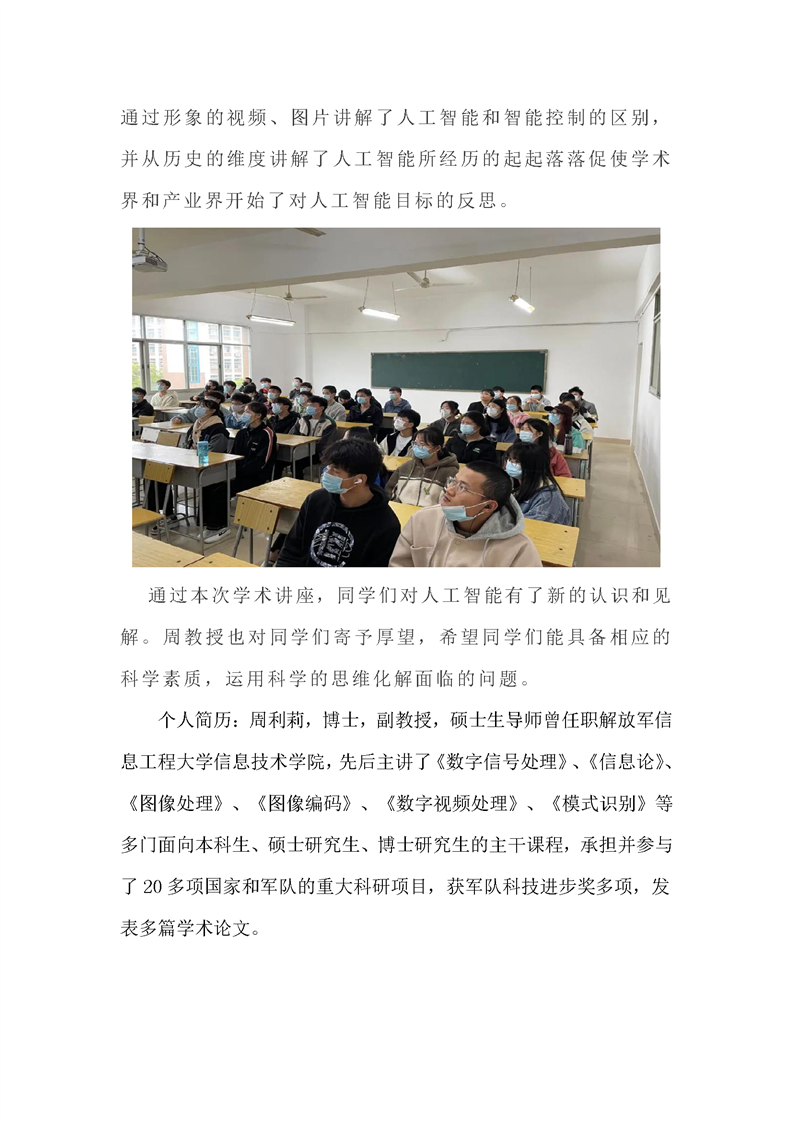 【学术活动】BB贝博艾弗森教授周利莉学术讲座: 浅谈人工智能