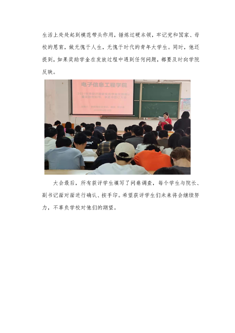 公司召开2021年秋季获评国家奖助学金发放确认 暨发放告知书、承诺书签订大会