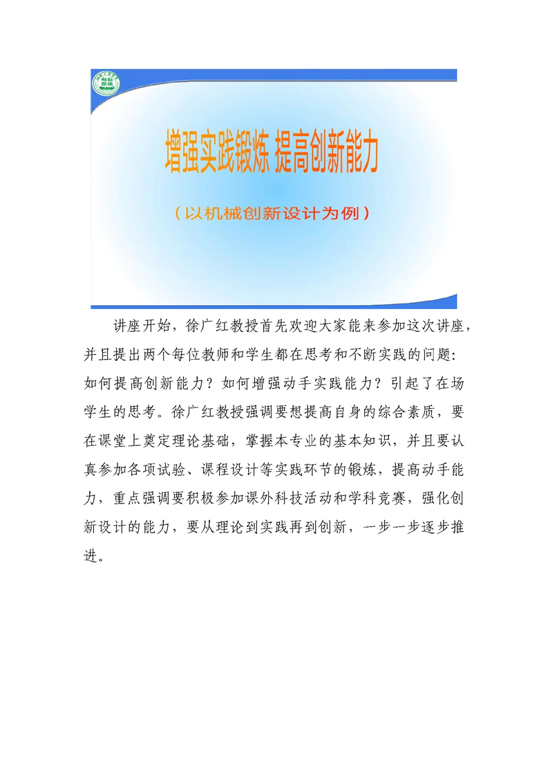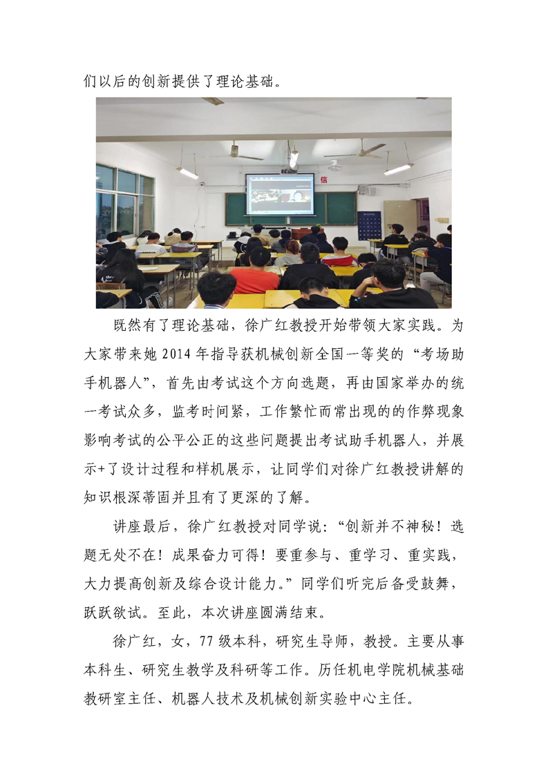 【学术活动】BB贝博艾弗森教授徐广红学术讲座:提高实践锻炼,提高创新能力