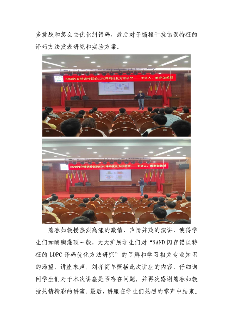 公司开展“NAND闪存错误特征的LDPC译码 优化方法研究”讲座