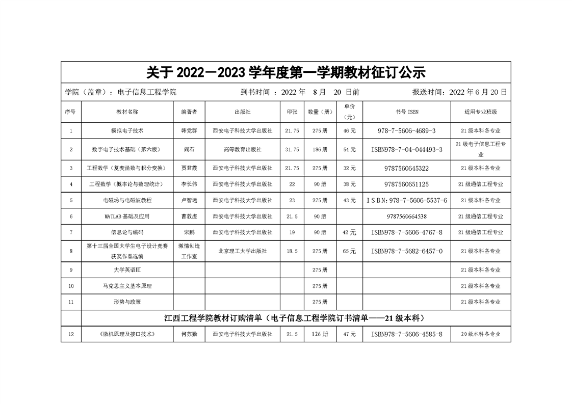 关于2022-2023学年度第一学期教材征订公示