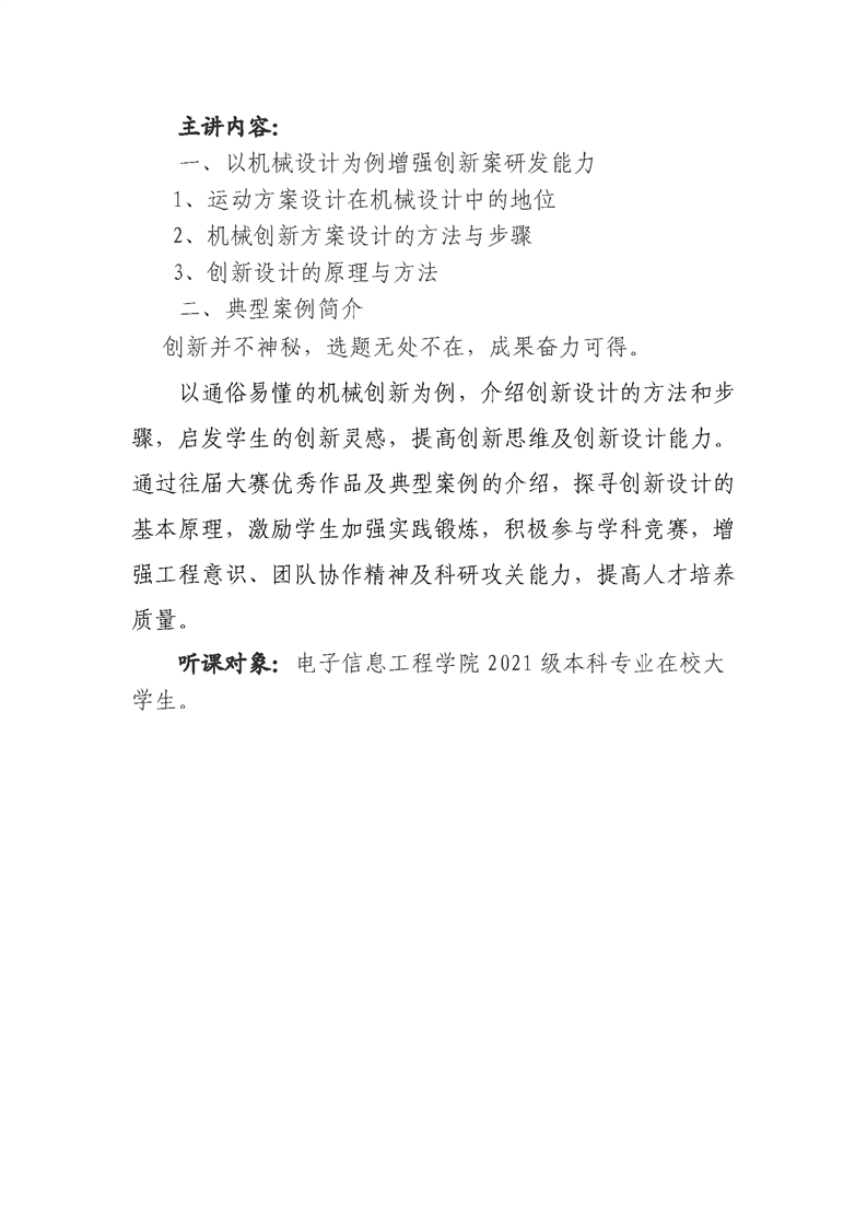 【学术通知】BB贝博艾弗森教授徐广红学术讲座:增强实践锻炼,提高创新能力(以机械创新设计为例)