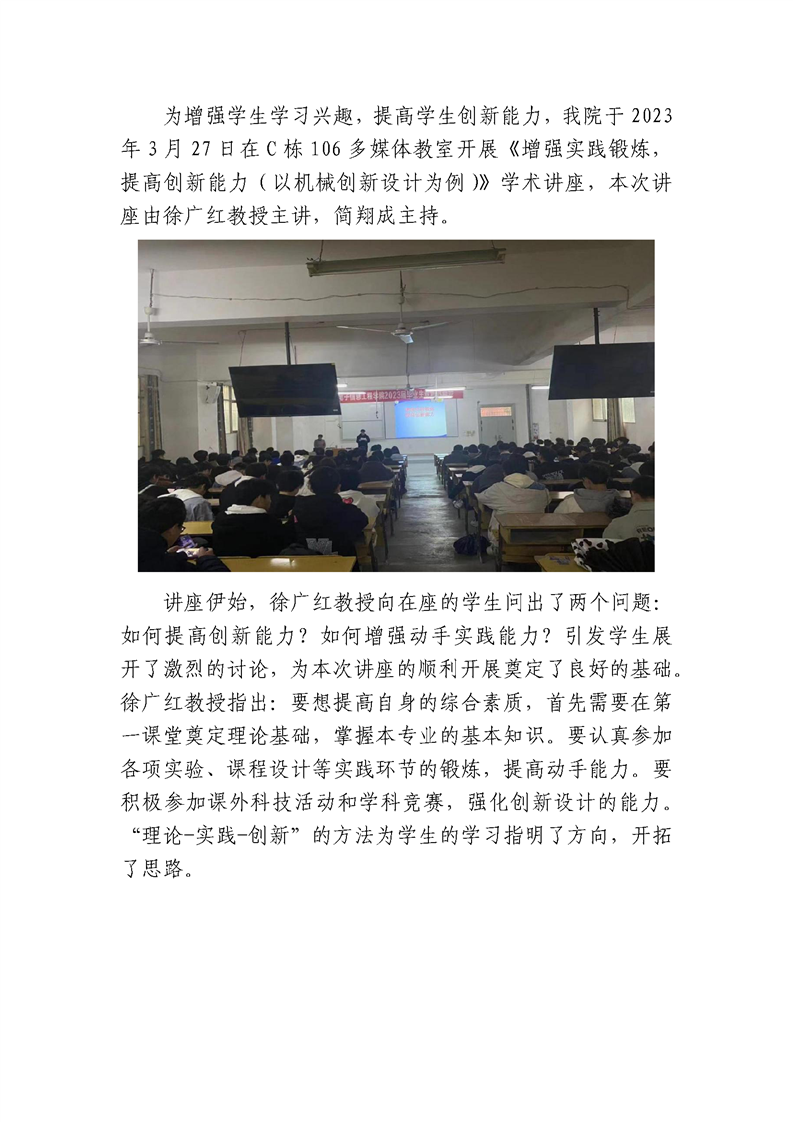 公司开展《增强实践锻炼,提高创新能力(以机械创新设计为例)》学术讲座