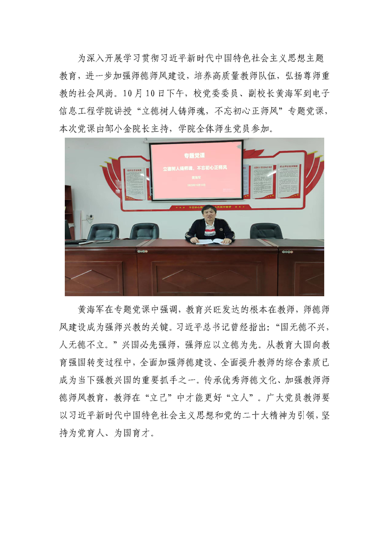 立德树人铸师魂,不忘初心正师风--黄海军专题党课