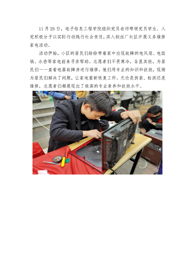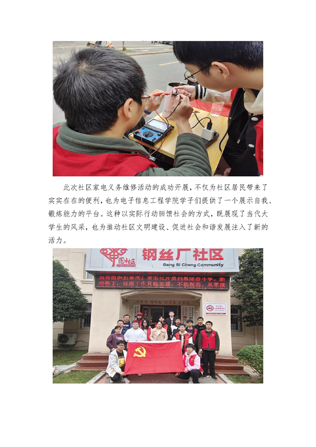 公司组织党员师生、入党积极分子深入钢丝厂社区开展义务维修家电活动