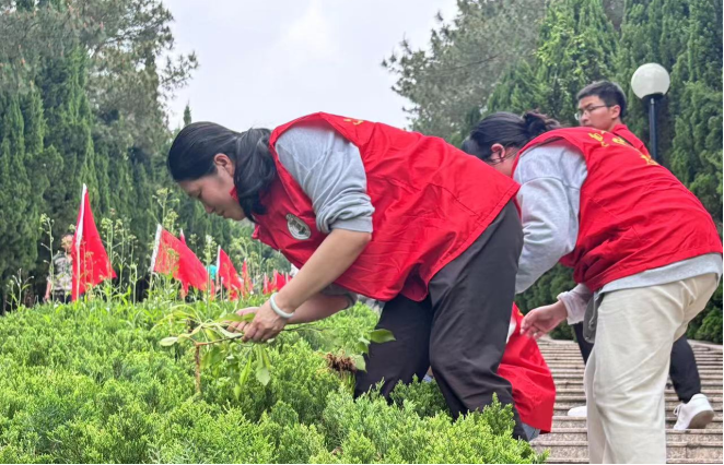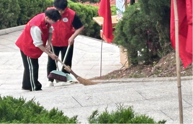 在清扫过程中,党员师生们充分发扬了不怕脏、不怕累的精神,他们认真清理每一个角落,用实际行动表达对烈士的敬意和对群众的服务之心。他们的身影在陵园中穿梭,成为了一道亮丽的风景线。