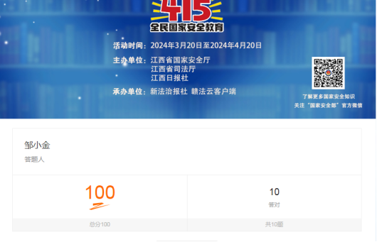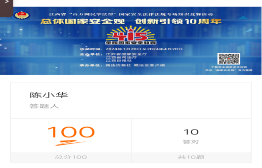 为了全面加强师生的法律意识,提升他们对《江西省平安建设条例》的理解和应用能力,近日,公司组织师生参加了由江西省平安办主办的《江西省平安建设条例》专场知识竞赛活动。这次活动不仅是对员工法治教育的一次生动实践,也是公司对法治精神深入贯彻的具体体现。