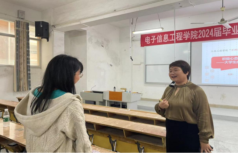 胡老师在台上生动讲解的同时,同学们认真聆听,积极参与互动,主动表达自己对幸福的见解。他们纷纷表示,通过此次讲座,不仅了解了心理健康知识,还学会了如何调节自己的情绪和压力,理解了老员工如何提升自身的幸福感,这对他们今后的学习和生活有很大的帮助。