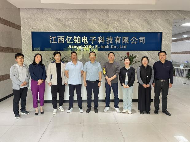 江西亿铂电子科技有限公司人事负责人李兵斌对邹经理一行人的到来表示热烈欢迎,随后带队参观了公司的生产车间并举行了座谈会。参观过程中,李经理向邹经理一行详细介绍了公司的概况、发展前景、产品简介以及人才需求。