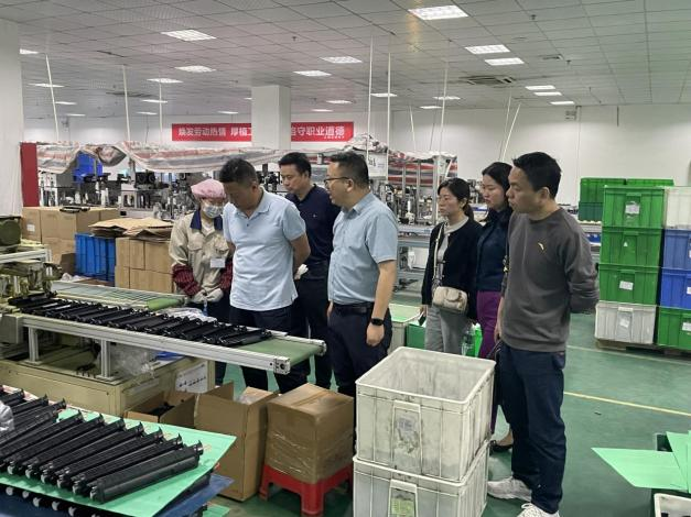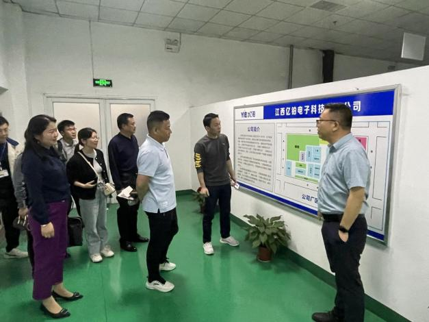 江西亿铂电子科技有限公司人事负责人李兵斌对邹经理一行人的到来表示热烈欢迎,随后带队参观了公司的生产车间并举行了座谈会。参观过程中,李经理向邹经理一行详细介绍了公司的概况、发展前景、产品简介以及人才需求。