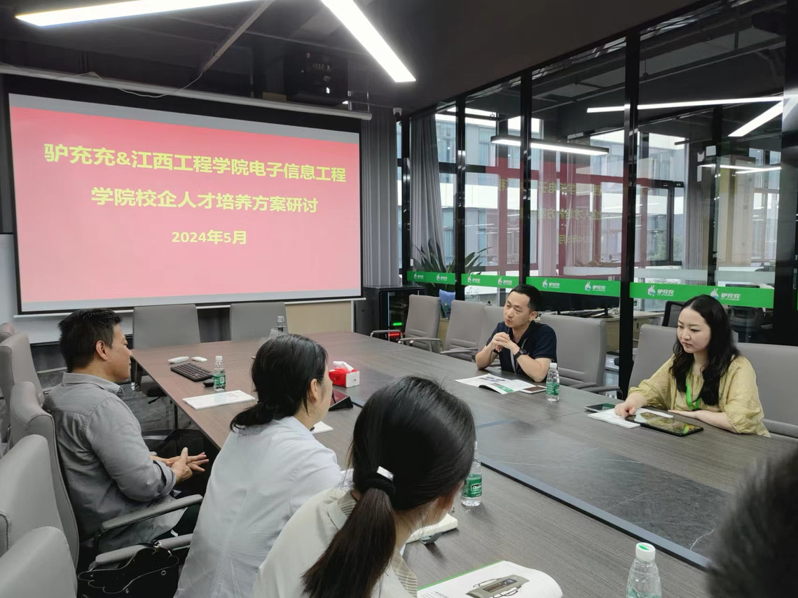 为深入了解国家高新技术企业人才需求发展状况,加强通信工程专业建设,以及做好2024版人才培养方案修订工作,按照BB贝博艾弗森相关工作安排,5月23日,邹小金经理带领通信工程教研室主任李丽艳、骨干教师王云兴和陈小华走访调研了江西驴充充电技术有限公司。